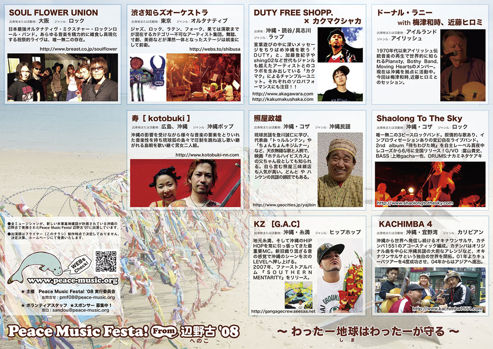 アルバムのアートワークにPeace Music Festa! 辺野古'07の時の写真が使われているアルバムがいくつかありますので、ご紹介します。